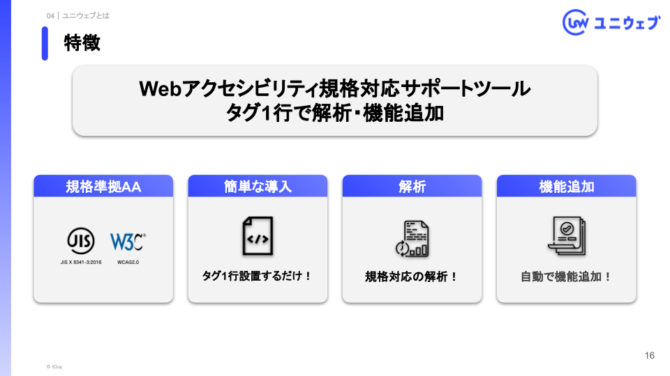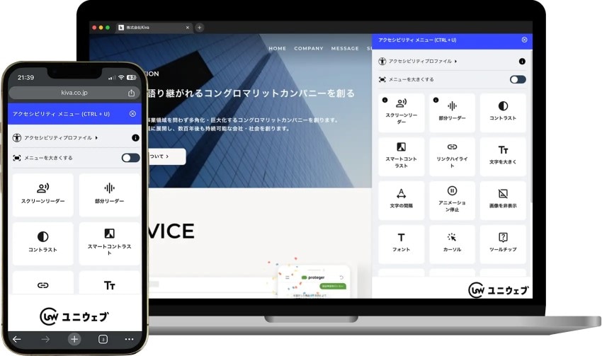 このような背景から、株式会社Kivaが提供する「全ての人が平等に利用できるウェブサイト」を実現するツール「ユニウェブ」をご紹介いたします。