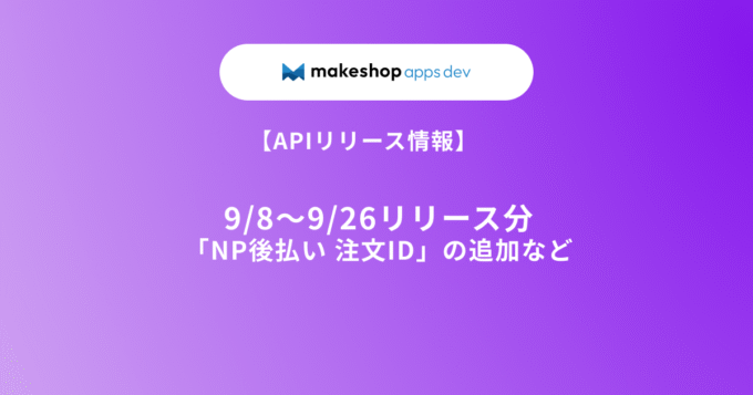 9/8~9/26にリリースされた次世代APIの情報をお知らせいたします。
