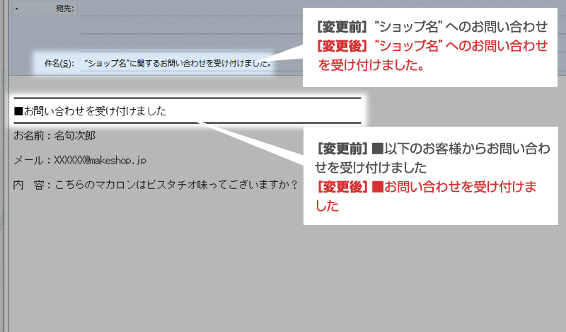 これまで、購入者様がスマホからショップ管理者様へお問い合わせをした場合、ショップから自動送信されるメールの文面は、ショップ様に送信される文言と同様のものが送信されていました。