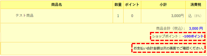 ポイント利用状況を購入者様に分かりやすくするため、【決済第二画面】に利用ポイントを表示させ、合計金額は次ページで確認する仕様に変更いたしました。