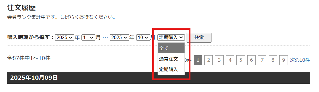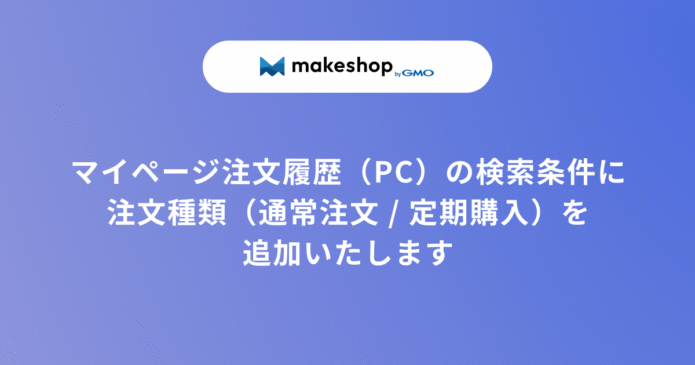 2025/10/27(月)15:00以降、有料オプション『定期購入』をご利用中ショップのマイページ注文履歴の検索条件に、注文種類(通常注文 / 定期購入)を追加いたします。