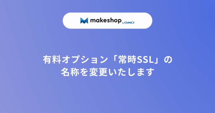 2025/11/4(火)15:00以降、独自ドメインをご利用の全ショップ様においてSSL証明書を無料で提供開始することに伴い、現在makeshopにて提供しております有料オプション「常時SSL」につきまして、サービス名称を下記の通り変更いたします。