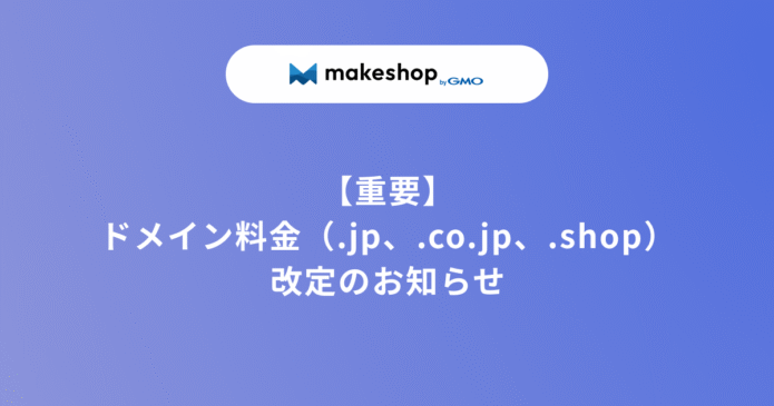 このたび、ドメイン仕入れ価格の変動にともない、makeshop経由で契約する「.jp」「.shop」ドメインの新規取得 および、「.jp」「.co.jp」「.shop」ドメインの更新料金の改定をおこなうこととなりました。