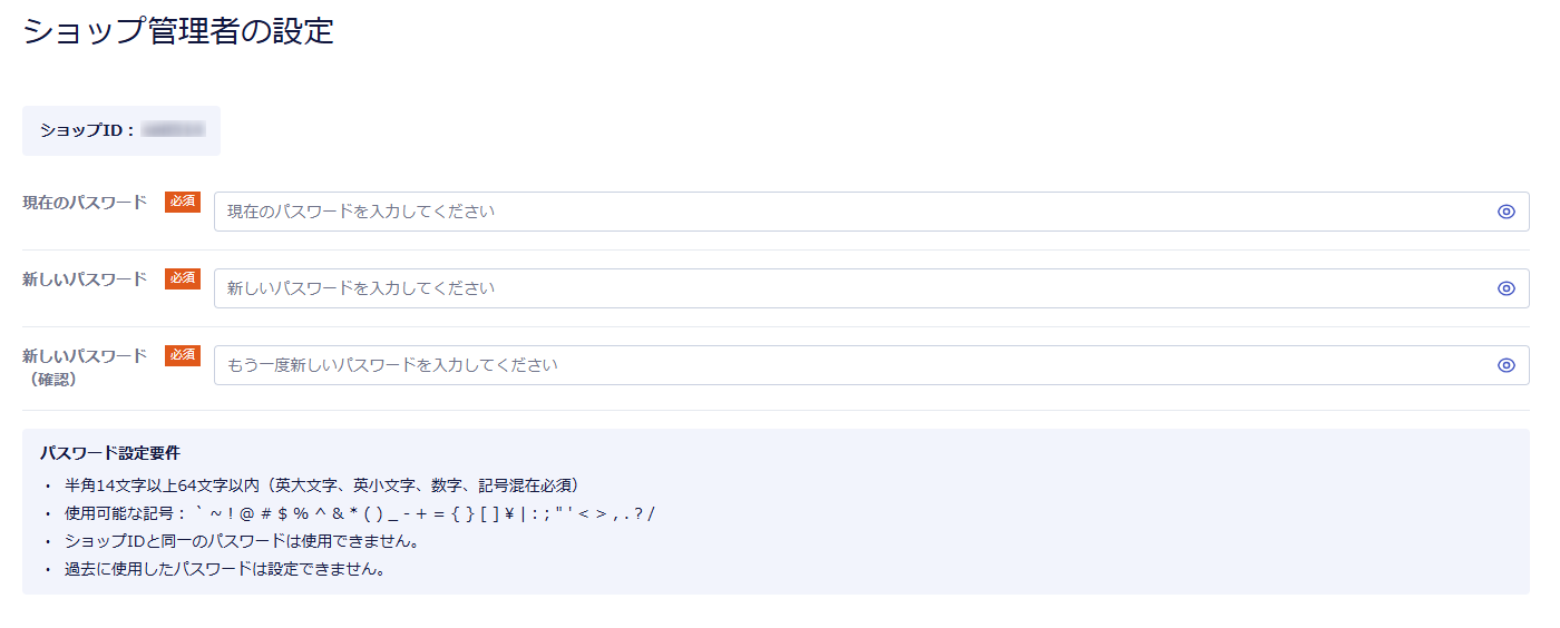 管理画面右上ショップID / アカウント管理 / ショップ管理者の設定