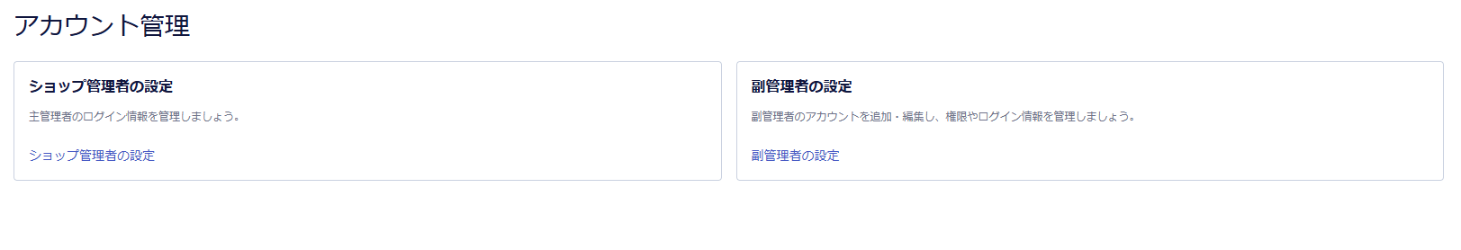 「ショップ管理者の設定」と「副管理者の設定」に分かれて表示されるようになります。
