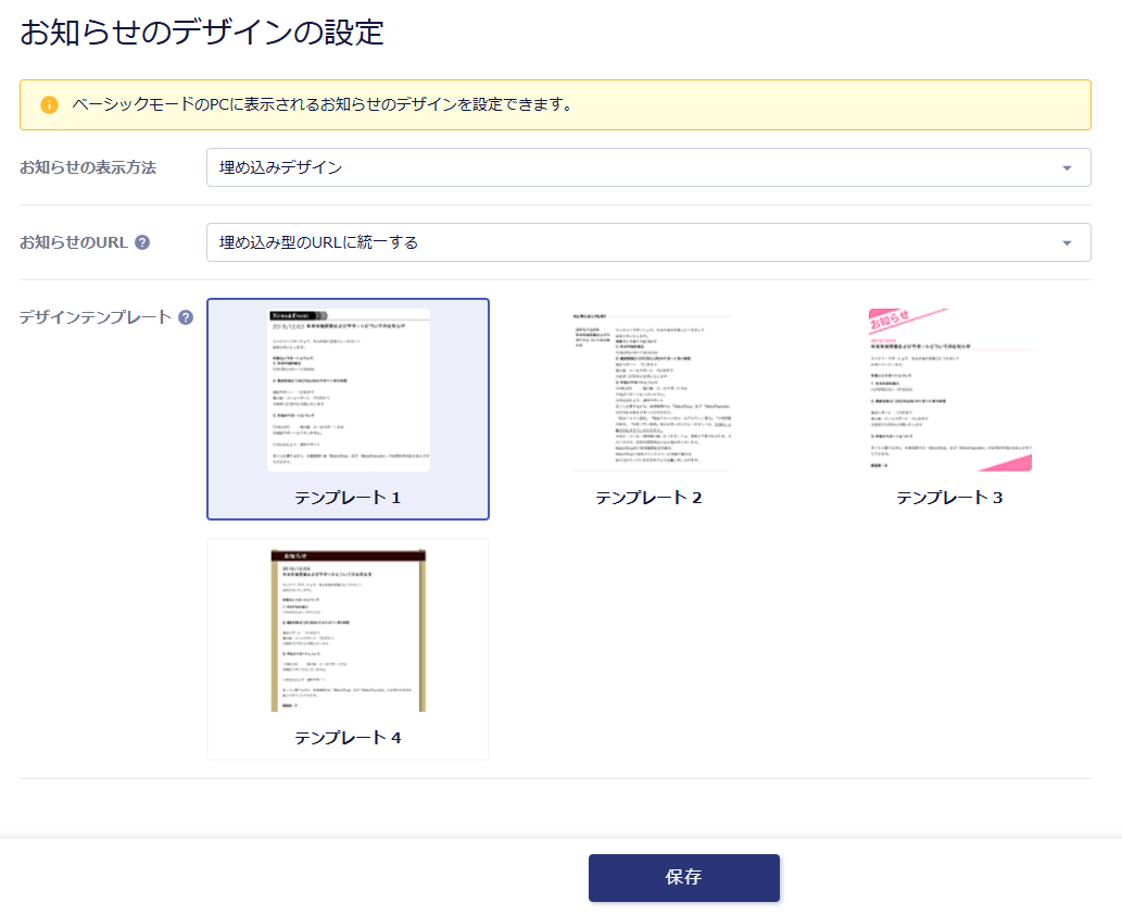 ※ベーシックモードのPCに表示されるお知らせのデザインを設定する機能です。
