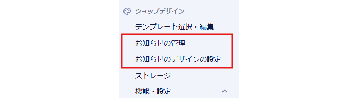 ショップデザイン / お知らせの管理 / お知らせの管理 と、ショップデザイン / お知らせのデザイン設定 の画面をリニューアルいたします。