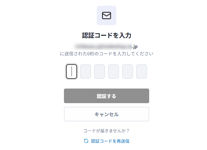 メール本文に6桁の数字が表示されます。有効期限は10分間です。