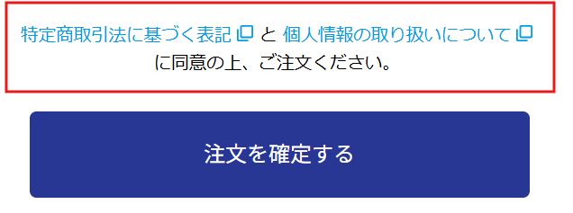 注文確定ボタン付近の文言を「同意」を取る文言に変更いたします。