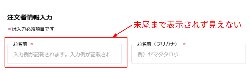 「登録フォーム項目」の「ショップページ入力例」が20文字以上になる場合、Smart Checkoutの「ゲスト購入画面」と「会員登録画面」で見やすいよう枠外に表示いたします。