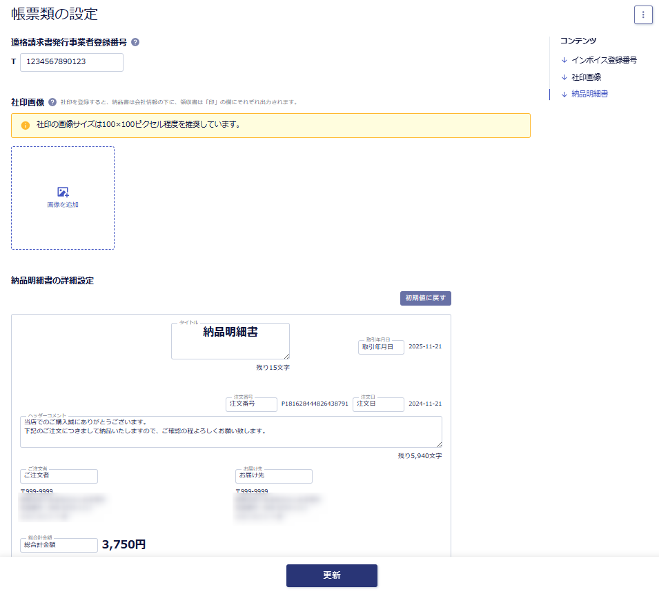 注文管理 / 機能・設定 / 明細書 / 帳票類の設定