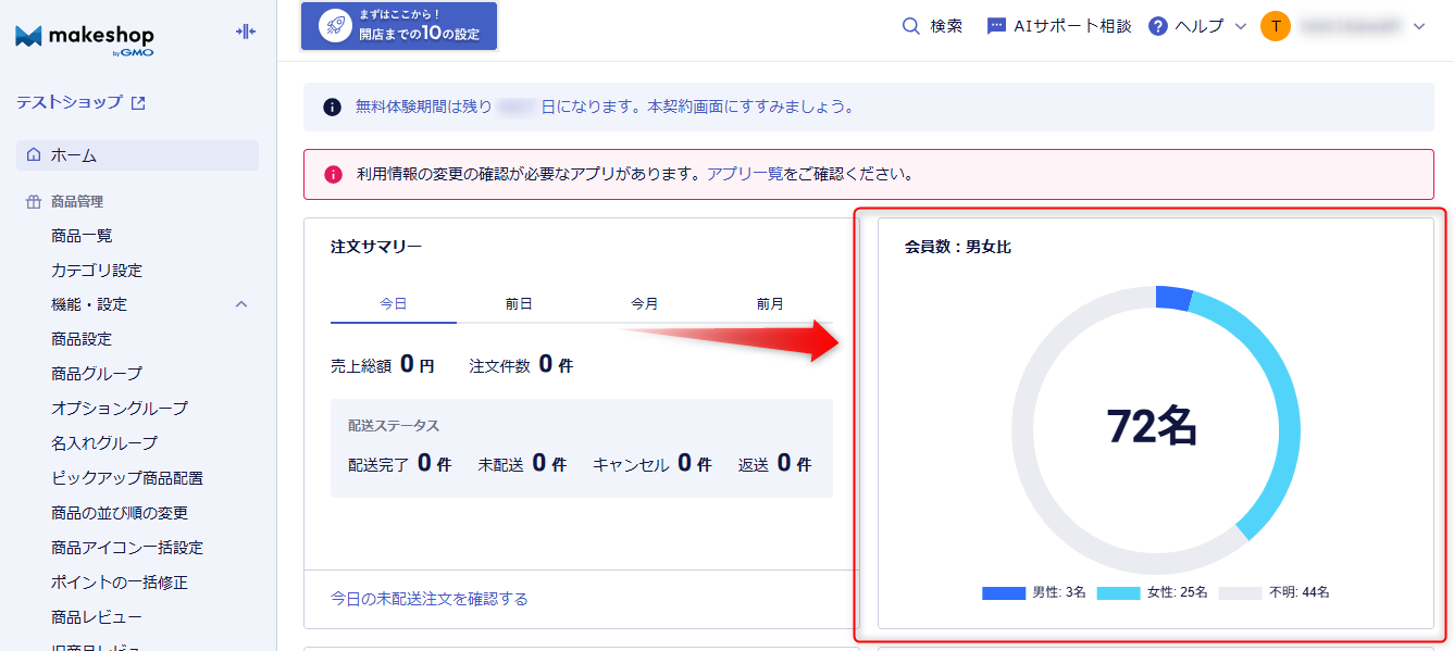 管理画面のダッシュボードに表示される「会員数」につきまして、集計方法の仕様変更をおこないます。