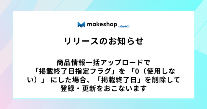 2026/2/9(月)15時以降に、商品情報一括アップロードにおいて、掲載終了日の登録・更新に関する仕様変更をリリースしました。