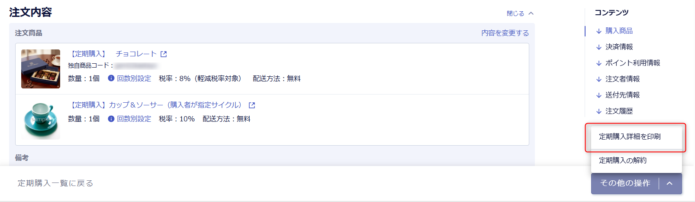 ・「定期購入詳細」画面に「定期購入詳細を印刷」ボタンを追加