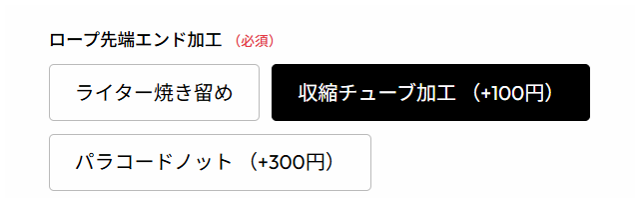 ・選択肢に応じた追加金額は「円」または「%」でプラス・マイナスいずれも設定できますが、「%」設定の場合、商品詳細ページで選択肢部分に「+15%」のように表示され、追加の価格(例:+100円)は表示されません。合算した価格は販売価格にのみ反映されます。