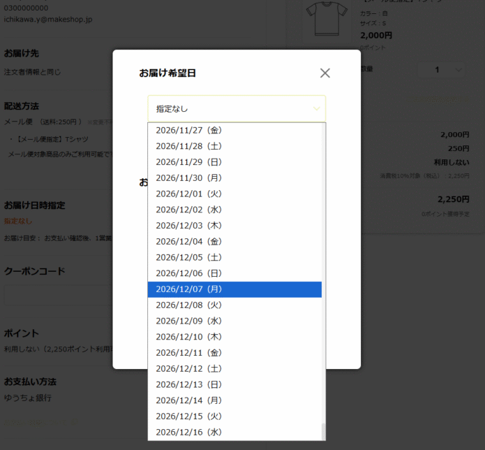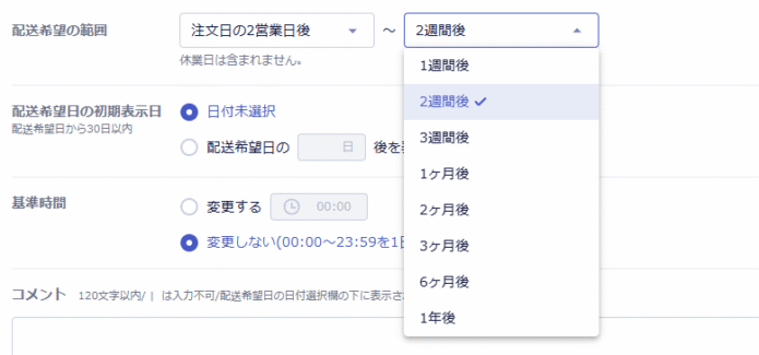 これにより、より長期にわたる配送希望日の設定が可能となり、ショップの運用にあわせてご利用いただけます。